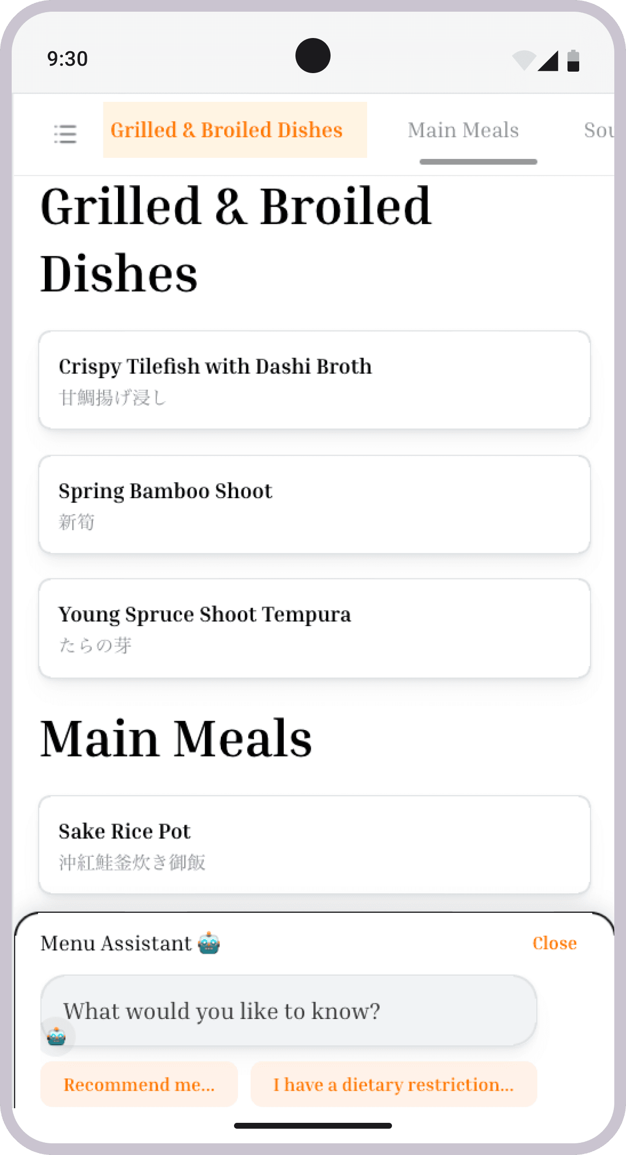 Kosho exists in that gap. We build tools that put the right knowledge in the right moment, so whether it’s reading a menu in a foreign language, cooking with what’s in season, or just figuring out what to eat, the distance disappears when it matters most.